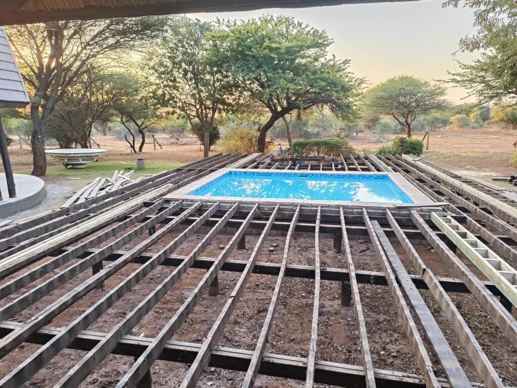 A brand-new Jacuzzi was built into the new deck. Just like before, guests can still sit in the Jacuzzi and watch game coming to drink from the lodge waterholes. We are one of the few lodges on Black Rhino who still have a jacuzzi. The completed decking area, pool and jacuzzi looks amazing! More than just looking amazing, it will be a huge source of delight in the months and years to come.